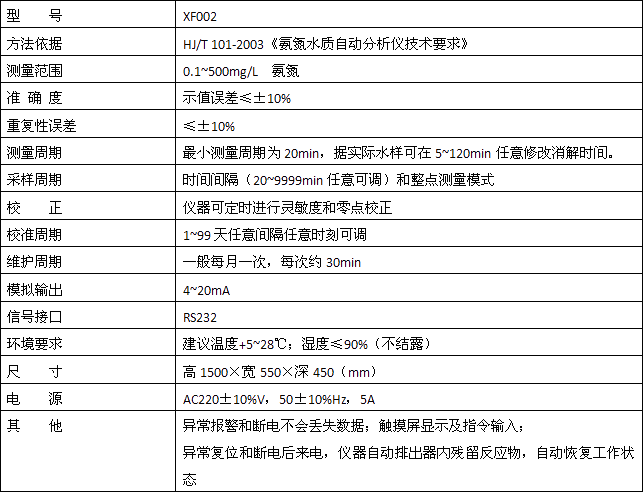 水樣和掩蔽劑混合后,以游離態(tài)的氨或銨離子等形成存在的氨氮,在堿性環(huán)境和增敏劑存在的情況下,與水楊酸顯色試劑反應(yīng)生成一種帶色絡(luò)合物,分析儀檢測此顏色的變化,并把這種變化換算成氨氮值輸出,生成的帶色絡(luò)合物量相當于氨含量。